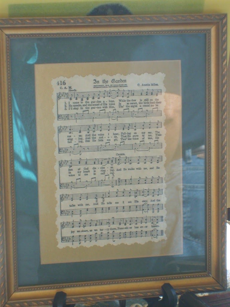 | A page from an old hymnal - it happens to be my mom's favorite hymn, In the Garden |